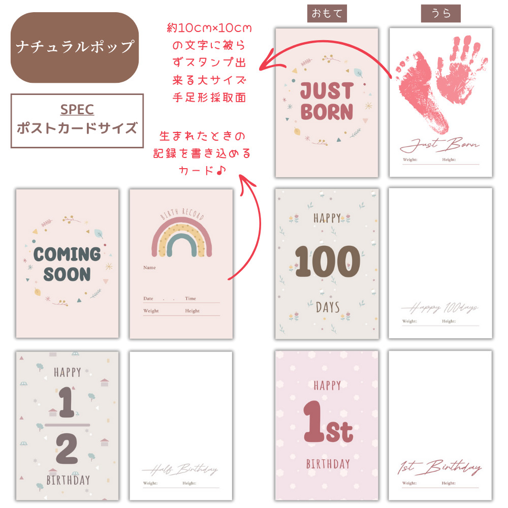 マンスリーカードの表はお子様の写真撮影に、裏面は 手形 足形 をスタンプして大切な成長の記録として残すことができます。