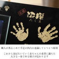 ★サイズ/ 御影石:縦230mm 横300mm 厚さ10mm フレーム部分アクリル:縦185mm 横130mm 厚さ5mm ★彫刻面サイズ/210mm×145mm ★材質/ 本磨き天然御影石 透明アクリル フレーム金具 イーゼル(サービス品) ★彫 刻/両手形 両足形 お名前 生年月日 身長 体重 簡単なメッセージ ※彫刻の情報に関しましては、お申し込み後、弊社から送らせていただくお仕立て券(お申込書)にご記入ください。 ★写真サイズ/はがきサイズ×1枚 ※写真は自由に差し替えできます。 〜ご注文時の注意事項〜 ★この商品に関しましては両手足形で作成の場合、商品の構成上生後100日位のお子様が限界となっております。 手足形の大きさにもよりますが生後100日以上のお子様は手形1つ足形1つでの作成となる場合がございますので予めご了承ください。 ★ご注文画面の【お届け先・住所】は最初に送らせていただくお仕立券の送付先になります。 ★出産祝い(ギフト)でご希望の場合は「ギフト用」をチェックしてください。ご希望ございましたらお仕立券に熨斗を付けてお届けします。 ※内祝いの場合は完成品に熨斗を付けてお届けします。 〜ご注文の流れ 他〜 ・手形・足形のとり方 もっと詳しく⇒ ・皆様からよくある質問 もっと詳しく⇒ | |
