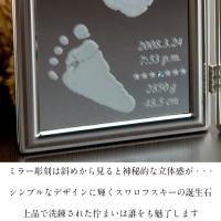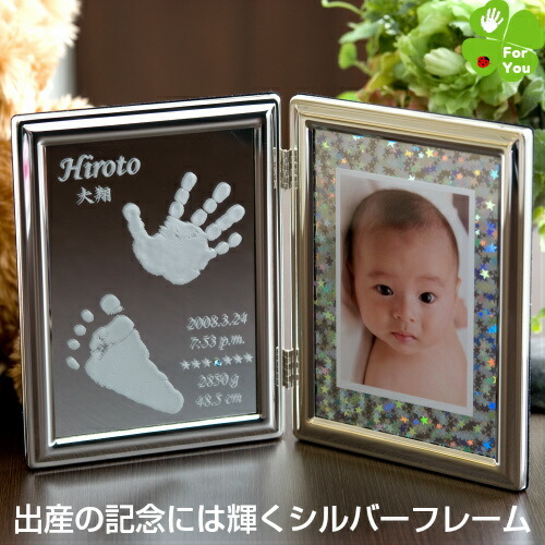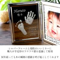 ★サイズ/縦200mm 横300mm 厚さ8mm ★彫刻面サイズ/縦170mm 横120mm ★材質/スチール(シルバーカラー) ミラー スワロフスキークリスタル誕生石 台紙 ★彫 刻/両手足形のうちいずれか2つ お名前 生年月日 身長 体重 ※彫刻の情報に関しましては、お申し込み後、弊社から送らせていただくお仕立て券(お申込書)にご記入ください。 ★写真サイズ/L版×1枚 (最大2L版まで入ります。) ※写真は自由に差し替えできます。 〜お仕立券について〜 ★お仕立券はご注文確定後即日、ご指定の送付先にメール便でお届けします。 〜ご注文時の注意事項〜 ★ご注文画面の【お届け先・住所】は最初に送らせていただくお仕立券の送付先になります。 ★出産祝い(ギフト)でご希望の場合は「ギフト用」をチェックしてください。ご希望ございましたらお仕立券に熨斗を付けてお届けします。 ※内祝いの場合は完成品に熨斗を付けてお届けします。 〜ご注文の流れ 他〜 ・手形・足形のとり方 もっと詳しく⇒ ・皆様からよくある質問 もっと詳しく⇒ | |