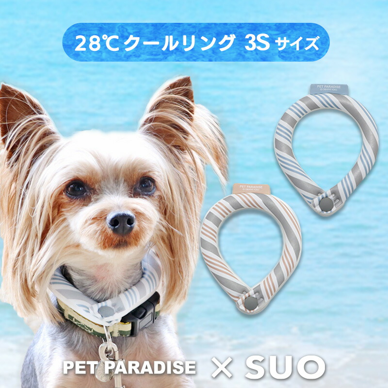 クールリング suo 犬 ネック ボタン付き リフレクター セール 小型犬 〔3S〕 外れにくい ひんやり | 28℃ 凍結 クーラー 水色 ベージュ セール 返品不可