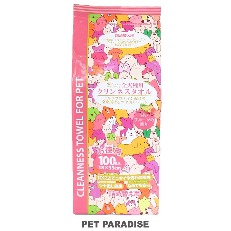 ペット用お手入れタオルです。においを拭き取り、仕上がりつややか。