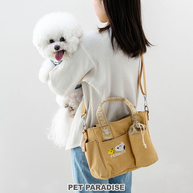 スヌーピー 犬 ベージュ 散歩 バッグ ショルダーストラップ付き | オソロコーデ おでかけ お出かけ お散歩 おさんぽ おしゃれ かわいい