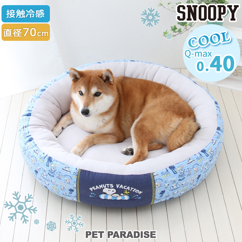 犬 ベッド クール 夏 スヌーピー カドラー 中型犬 大型犬 | バケーション柄 丸型 接触冷感 夏用 猫 あごのせ 洗える ひんやり 涼感 冷却 セール 返品不可