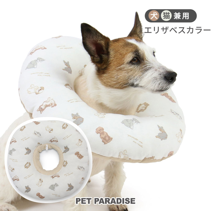犬 ふわふわ エリザベスカラー 〔S〕 ワン柄 makokoro | 猫 ソフト エリカラ 調節 布 柔らかい かわいい 小型犬