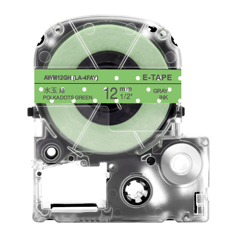 キングジム テプラPRO 用 互換 テープ カートリッジ 12mm 模様ラベル SWM12GH 対応 水玉 緑 地 グレー文字