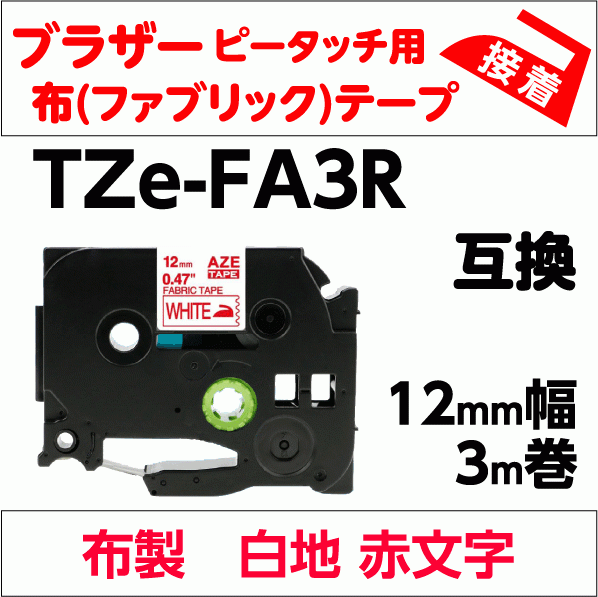 ブラザー ピータッチ・ピータッチキューブ 用 互換 TZe-FA3R ファブリックテープ 12mm 布 白地 赤文字
