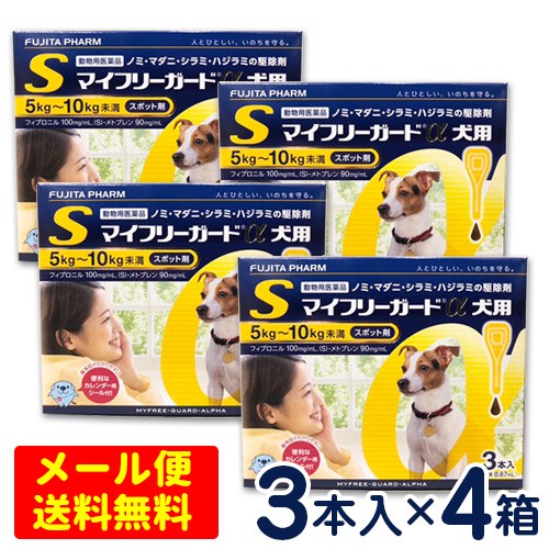マイフリーガードα 犬用 S(5〜10kg) 3本入り×4個セット ノミ・マダニ予防薬 【メール便専用】