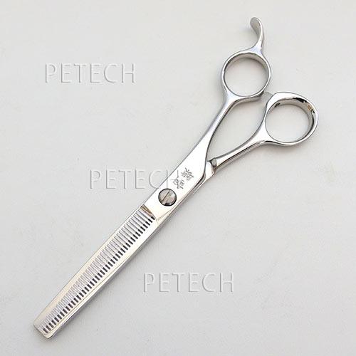 在庫整理品です。在庫整理品につきパッケージ汚れがある場合がございます。新品です。なくなり次第終了となりますのでご了承下さい。女性のトリマー様の声にお応えすべく、小振りのハンドルを新設計。指穴の位置が近く、手の小さい方ですと、持った瞬間から違いがわかります。更に平ネジを採用し、しっかりとした造りのセニングに仕上げました。胡蝶セニング伝統の使い勝手の良さはそのままに、精度を高め、使い心地が格段にUPしています。コバルト鋼製ならではの永切れ性、耐久性の高さも逃せません。42目、カット率45%、6.0インチ。正刃