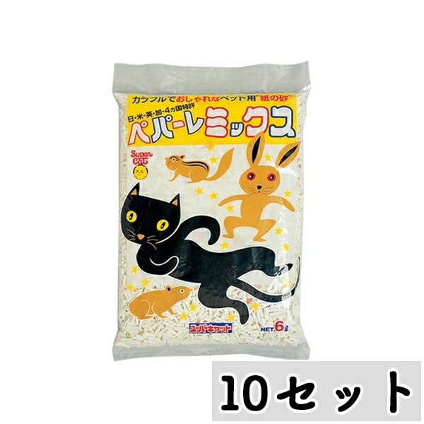 【まとめ買い】◇スーパーキャット ペパーレミックス 6L×10セット 猫砂 トイレ砂・飛び散りにくく、ほこりも立ちにくい安全無害の消臭剤を使用した、独特の紙つぶ構造です。