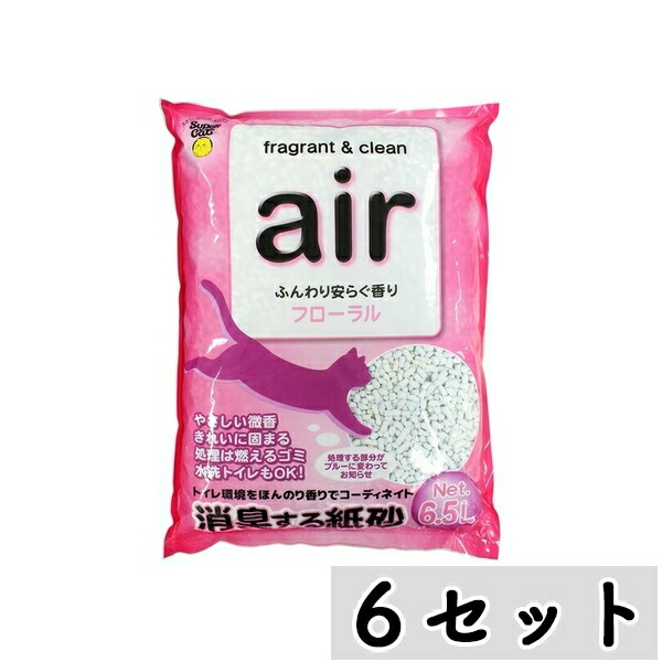 【まとめ買い】◇スーパーキャット air フローラル 6.5L×6セット 猫砂 トイレ砂トイレ環境をほんのり香りでコーディネート!濡れた部分がブルーに変わってお知らせ!ふんわり安らぐフローラルの香り!