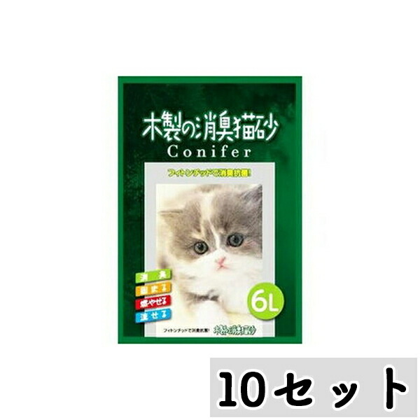 【まとめ買い】◇コーチョー 木製の消臭猫砂コニファー 6L×10セット●多孔質構造で瞬間吸収&消臭抗菌。特徴、固まる、燃やせる、消臭、流せる