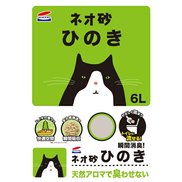 コーチョー ネオ砂ヒノキ 6L●ひのきの天然成分フィトンチッドが嫌な臭いを消臭。・固まる・燃やせる・消臭・流せる