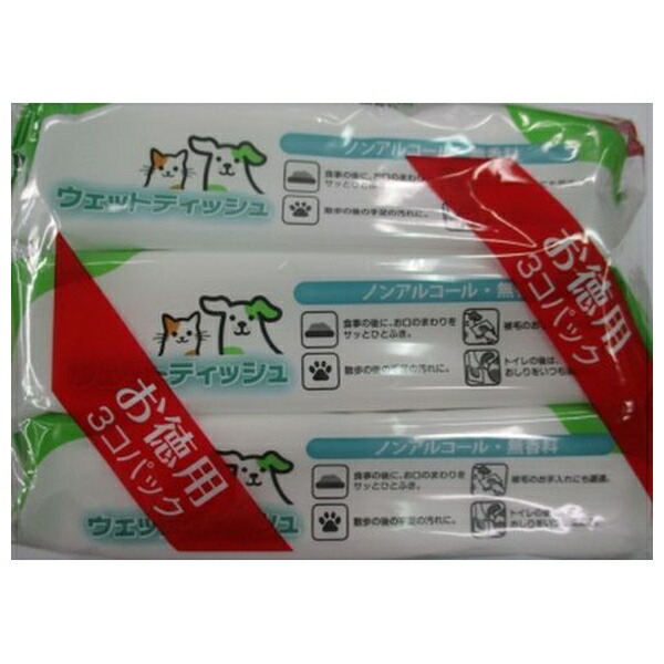 静電気を抑え花粉やホコリをつきにくくするウェットティッシュです。お徳用3個パック