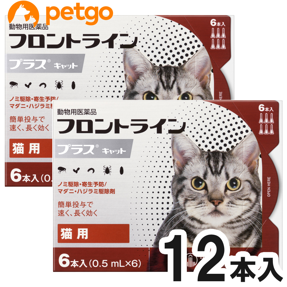 必ず製品の添付文書をよく読み用法用量を守って正しくご使用ください。セットでの販売の商品になります。単品での返品は一切お受けしておりません。あらかじめご了承くださいませ。フロントライン プラスは、従来のフロントライン同様に、ペットに寄生した成ノミやマダニを速やかに駆除。加えて、新配合の(S)-メトプレンがノミの卵の孵化・発育まで阻止するダブルの効果で、寄生中のノミだけでなく、その繁殖・再寄生を予防します。また、猫のハジラミを駆除する効果も確認されています。