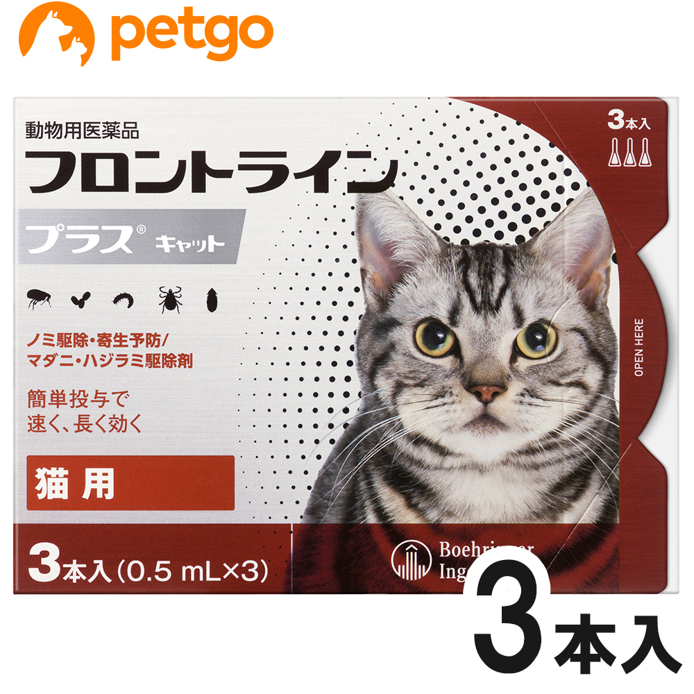 【沖縄県へのお届けは陸送でのお届けとなります。お届けまでに約一週間程度かかりますので、あらかじめご了承ください。】必ず製品の添付文書をよく読み用法用量を守って正しくご使用ください。フロントライン プラスは、従来のフロントライン同様に、ペットに寄生した成ノミやマダニを速やかに駆除。
