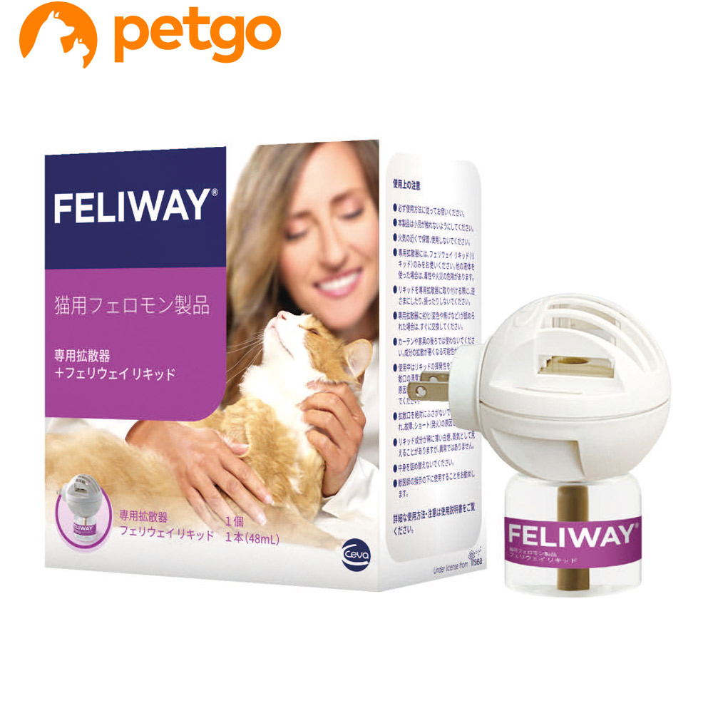 【フェリウェイは】猫のフェイシャルフェロモンを用いて、ハッピーメッセージをお届けします。お出かけや動物病院への通院時など環境の変化を伴う場面で、低下しがちなQOL改善のお手伝いをします。【猫フェイシャルフェロモンとは】フェロモンは、動物から放出される化学物質です。猫においては、猫同士のコミュニケーションの役割を果たします。猫フェイシャルフェロモンは猫のハッピーメッセージと考えられています。【こんな時に】猫ちゃんは環境の変化にとても敏感です。普段の生活の変化時はもちろん、お出かけ、特に動物病院への通院時などにもご使用いただけます。