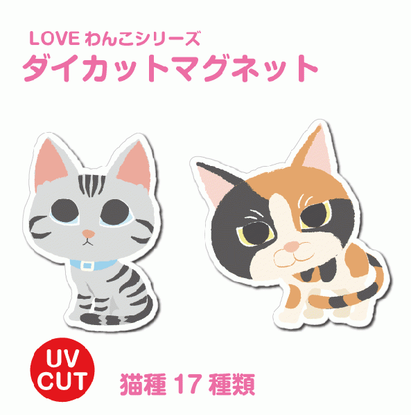 猫 「 LOVEにゃんこ ダイカットマグネット 」 型抜き かわいい 車 17種類