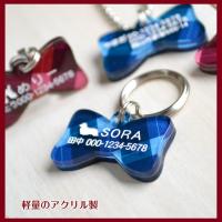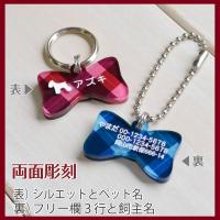 犬 迷子札 名入れ 「 ブロックチェックリボン 」 ( 両面彫刻 ) アクリル製 オーダーメイド かわいい チェック柄 シンプル