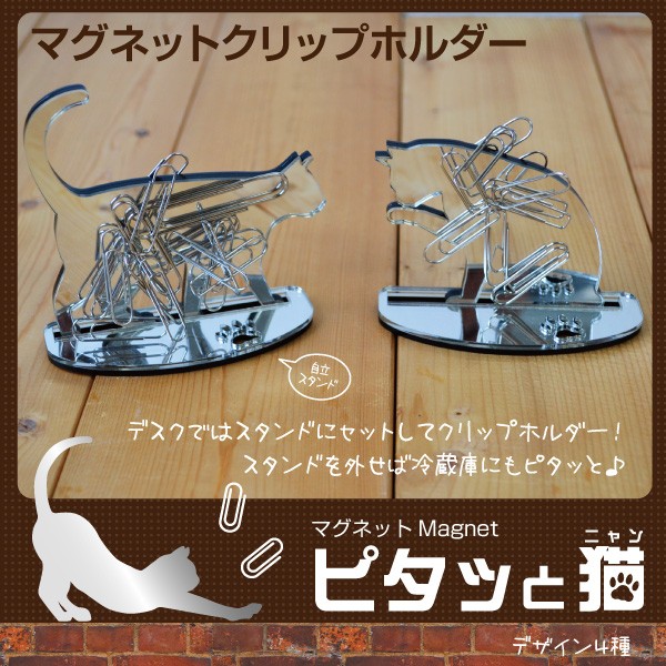 スタイリッシュな猫型クリップホルダー マグネット!<br>