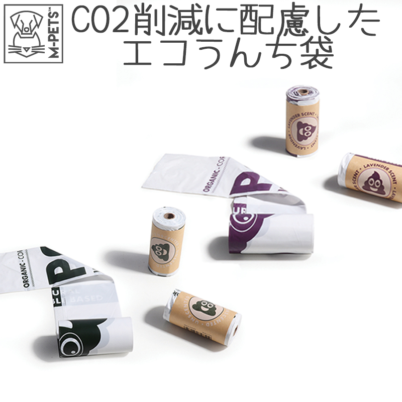 | M-PETS Pooエチケットバッグ 無香 ラベンダー 4ロール入 環境に配慮したECO商品☆CO2排出量削減に配慮したバイオマス素材のエチケットバッグです |