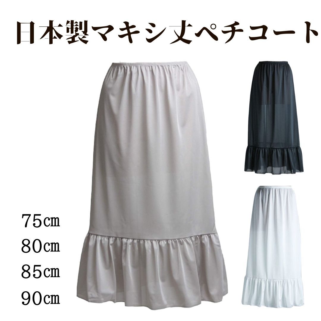 ペチコート 透け防止 インナースカート ロング ロングスカート ワンピース マキシ丈 フリフリギャザー 黒