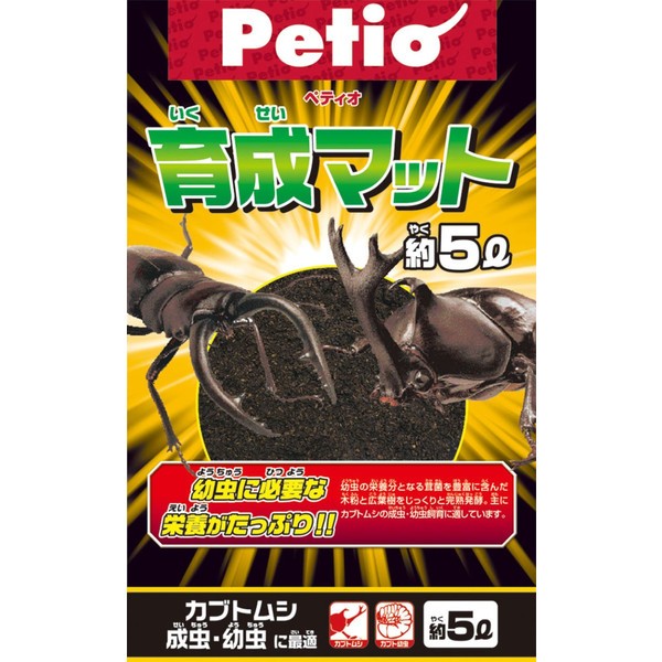 <カブトムシの産卵・幼虫を育てる場合>(1)使用前にマットを軽く握って固まる程度に水で湿らせてください。(2)大きめの飼育容器に10cm以上の深さになるようにマットを入れてください。(3)マットの上に朽ち木やのぼり木を置き、ゼリー等を入れたエサ皿を置いてください。(4)オス・メスをペアで飼育していると、メスは8月頃までにマットの中に2〜3mmの白い卵を産み、2〜3週間でふ化して幼虫になります。(卵を産ませる場合は1つの飼育容器に1ペアで飼育してください。)(5)幼虫はたくさんのマットや朽ち木を食べて成長します。マットの表面に丸いフンが目立ってきたら、新しいマットに交換してください。(6)マットが乾かないように水分を補給してください。(7)幼虫は5〜7月頃にマットの中に部屋(よう室)をつくり、その中でサナギになり、2〜3週間で成虫になってマットの上に出てきます。この間は飼育容器をゆすったり、マットを交換しないでください。