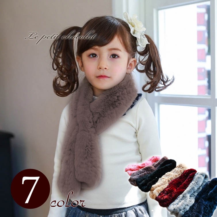 ラビットファー マフラー 100% リアルファー 全7色 スヌード ショール ティペット キッズ フリーサイズ 女の子 メール便OK