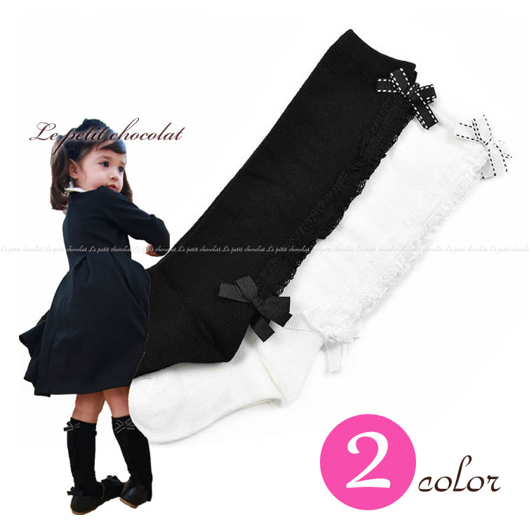 靴下 子供 ハイソックス ブラック ホワイト 黒 レース リボン シンプル キッズ ジュニア ベビー フォーマル スクールソックス 女の子
