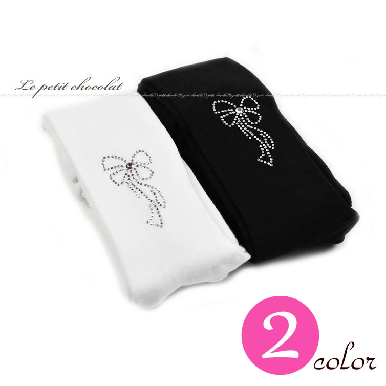 タイツ 子供 キッズ スタッズ リボン 白 黒 白タイツ 黒タイツ ラインストーン 発表会 ジュニア 子供タイツ キッズタイツ