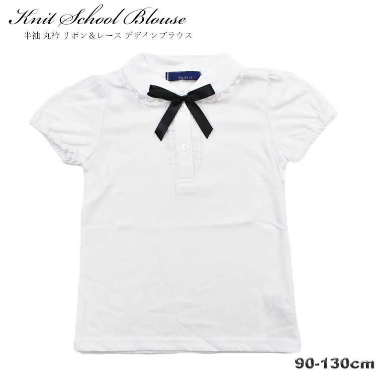 ブラウス 半袖 女の子 スクールブラウス 半袖 丸襟 リボン 1122 ホワイト 90 100 110 120 130 幼稚園 小学生 入学 制服 お受験