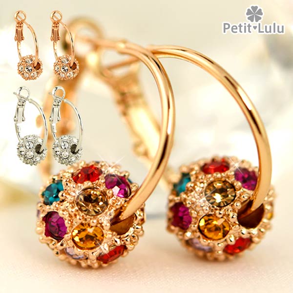 ピアス フープピアス 18金 K18 アレルギー対応 スワロフスキー 彩石 ミラーボール 揺れる レディース プレゼント ホワイトデー お返し ギフト