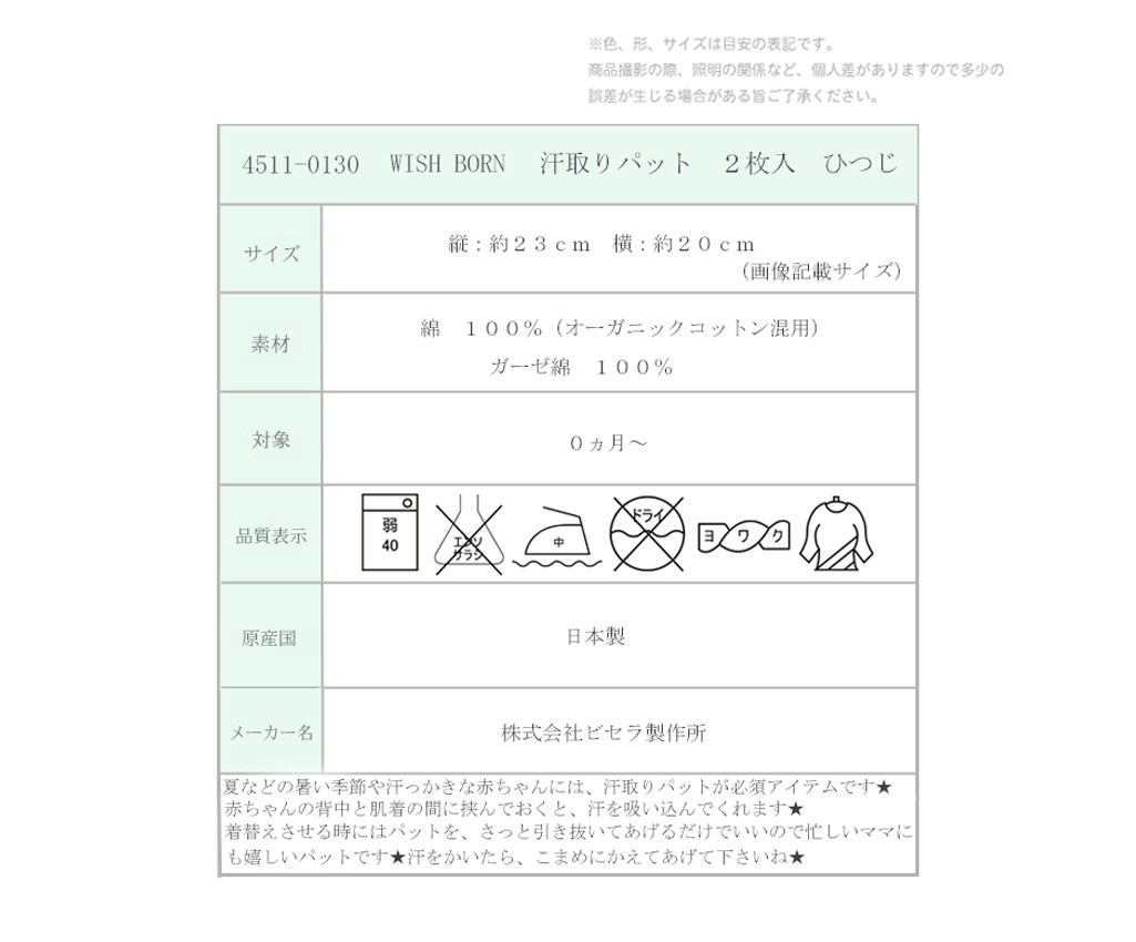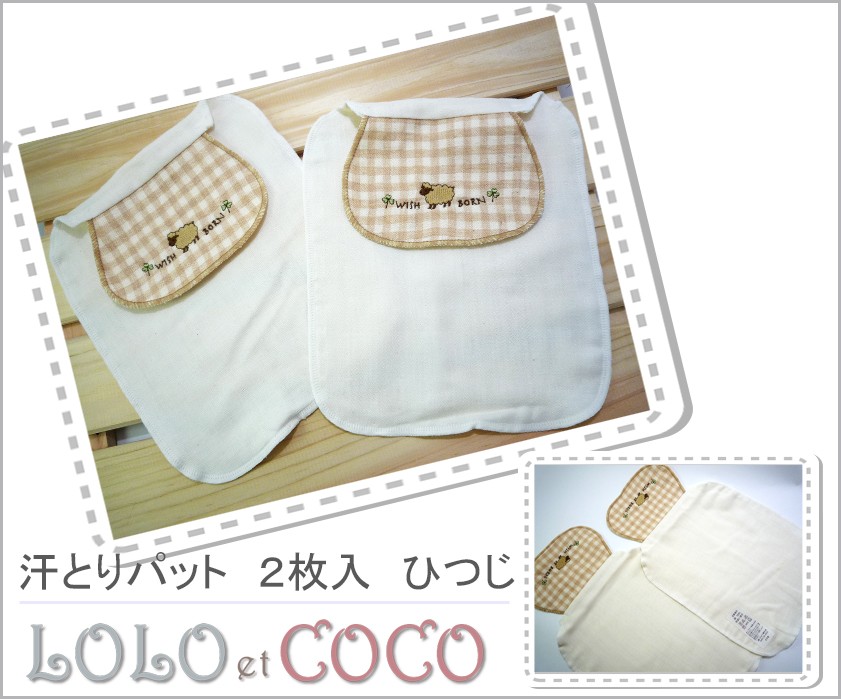 汗取りパット 出産祝い ベビー オーガニック WISH BORNひつじ 2枚入 日本製 赤ちゃん 肌に優しい 可愛い ナチュラル メール便可〇