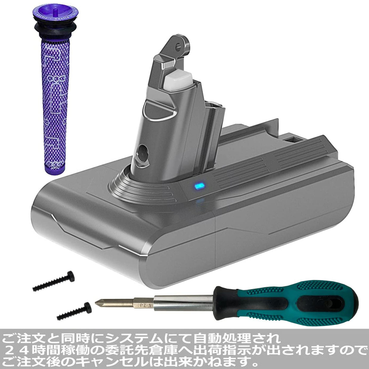ダイソン互換バッテリー V6シリーズ DC58 / DC59 / DC61 / DC62 / DC74 / SV07 / SV08 / SV09対応 【3000mAh 排気フィルターなし】