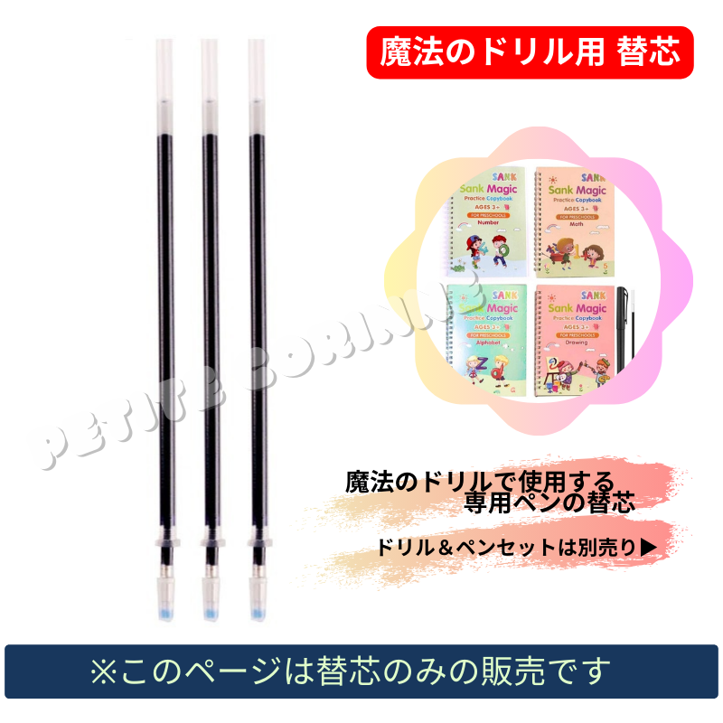 魔法のドリル用替芯のみ 3本セット ペン替芯 練習帳 英語 数字 絵 算数 本 子供の勉強 楽しく勉強 書いて消える 繰り返し使える 文字書き 知育玩具