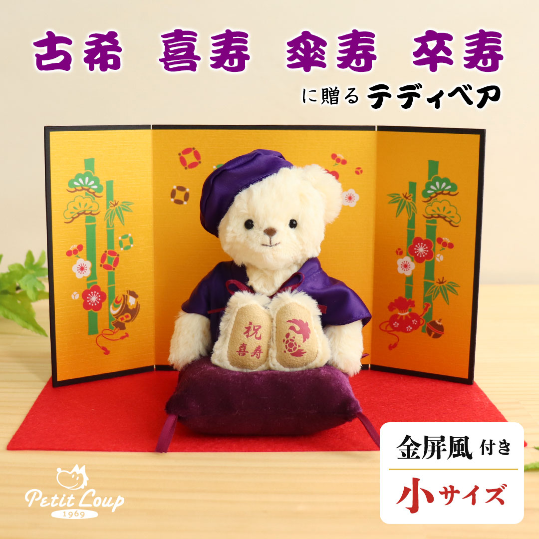 | 備考 | ・座布団とベアの両手にマグネット内蔵(安定して座ることができます。) ・足裏に「祝古希」または「祝喜寿」または「祝傘寿」または「祝卒寿」の文字と、長寿の象徴の鶴と亀がプリントされています。 |
