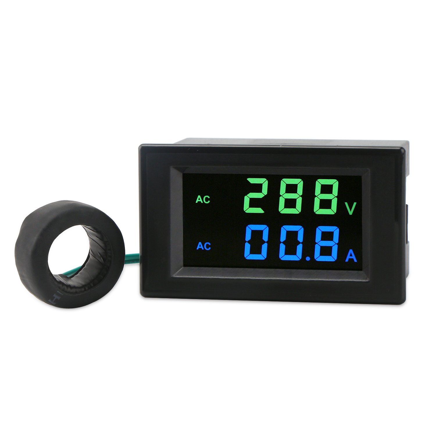 商品名:DROK LCD画面 デジタルマルチメータ 電圧計電流計 AC 80-300V電圧電流メータゲージ 100A電流センサトランス付け 2線式デジタル電圧アンプモニタパネル (第二代)