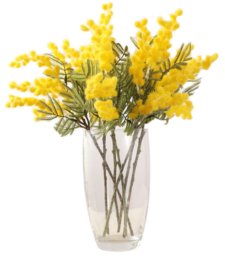 Kugusa ミモザ アカシア 造花 アーティフィシャル フラワー 枝垂れ枝 春 ブライダル 装飾 (黄色【3本】)