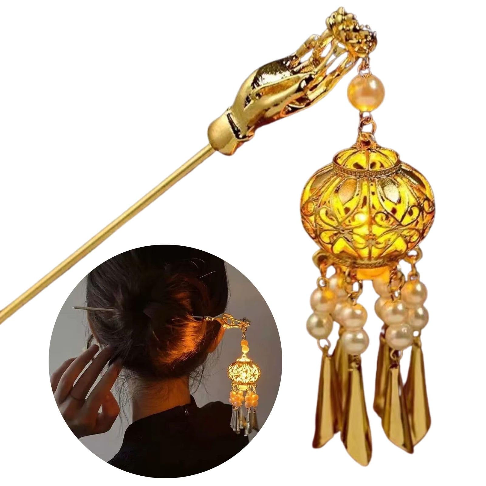 商品名:Parhumsin 光る 簪 一本挿し 簪 パーツ かんざし 一本 普段使い (ちょうちん白)