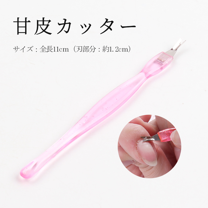 | 商品説明 | 下処理の際に大活躍の甘皮カッター これひとつでスイスイ楽々甘皮をカットすることができるので 初心者の方にもおすすめ! コンパクトで軽い仕様で持ち歩きにも最適です ジェルの内蓋を開ける際に甘皮カッターを使用すると とってもスムーズに開封が出来るのでお勧めです★ |