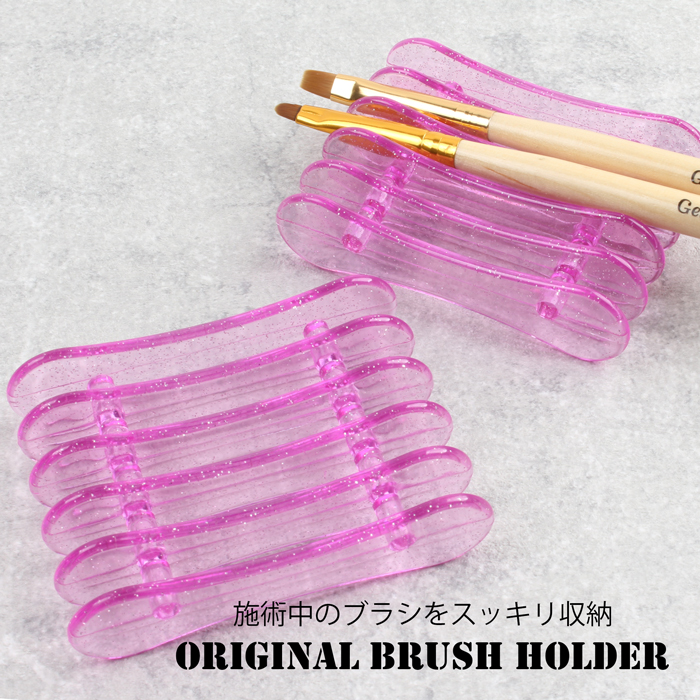 | 商品説明 | 施術中によくブラシが転がってしまって、ジェルの置き場に困ったりホコリがついたり… そんな時に便利なアイテムがこのブラシホルダーです! シンプルながらもラメ入りで見た目も可愛い人気のブラシホルダー ポンとのせるだけで筆が転がったり他の道具にジェルが付く事を防いでくれます 筆が最大5本も置けるので施術もラクラク♪ |