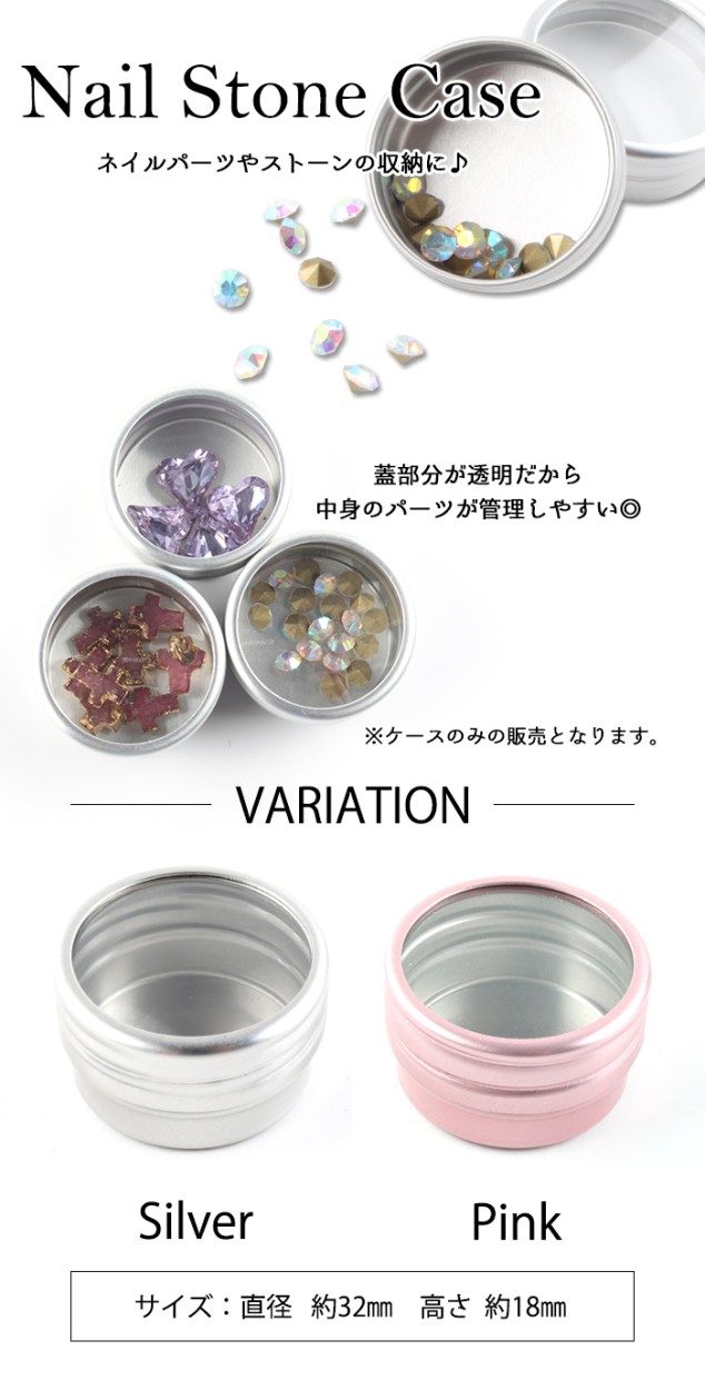 | 商品説明 | ネイルパーツやストーンの収納にぴったり! 蓋が透明なので一目瞭然♪ パーツ管理しやすい設計です! パーツはもちろん、グリッターやホログラムをいれても 可愛く保管できますよ★ |