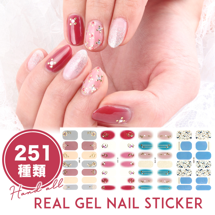 ネイルシール 貼るだけ 3D フルカバー ハンド 全251種類 リアルジェルネイルステッカー