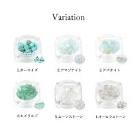 | 種類 | 【1】ターコイズ【2】アマゾナイト【3】アパタイト【4】エメラルド 【5】ムーンストーン【6】オーロラストーン【7】ラピスラズリ 【8】アメジスト【9】ローズクォーツ【10】チェリークォーツ 【11】トパーズ【12】アンバー【13】トルマリン |