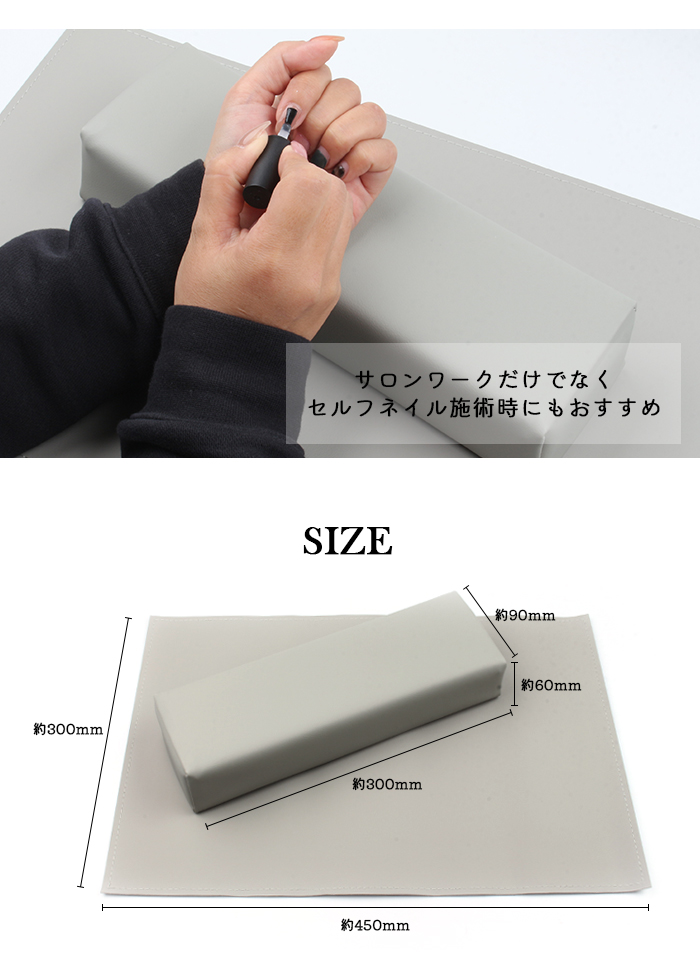 | 商品説明 | テーブルをダストなどの汚れから守るマットと 腕を固定できるアームレストがセットに◎ ネイルサロンでの使用だけでなく セルフネイルの際にもおすすめです! |