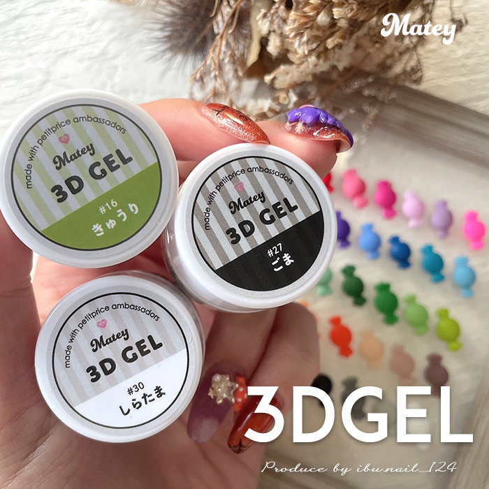 | 商品説明 | 第4期プチプラ公式アンバサダーibu.nail_124さんコラボ! こねるだけで簡単にオリジナルパーツができる『3Dgel』 豊富なカラーバリエーションは30色展開! ジェルを混ぜてオリジナルカラーも作れるので デザインの幅もぐんと広がります♪ テクスチャは柔らかくしっとりしていて、ベタつかず 納得いくまで何度も形成ができるので 初心者さんにも扱いやすい◎ さ!あなたも一緒に「レッツ!こねこね!」 |