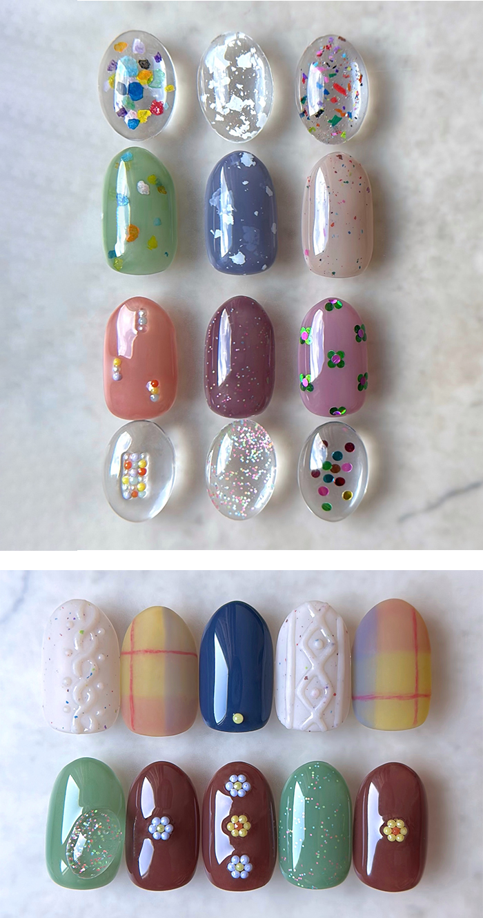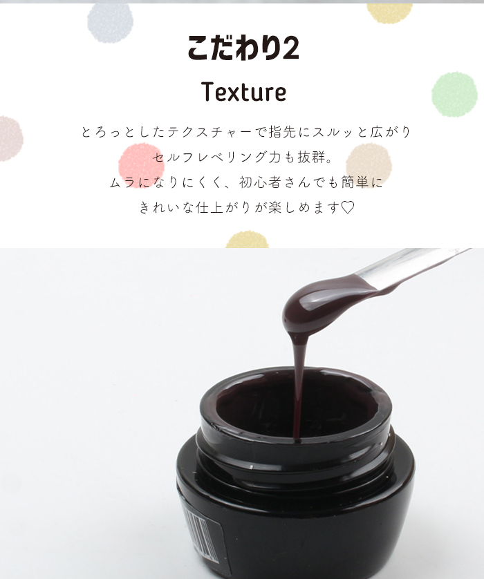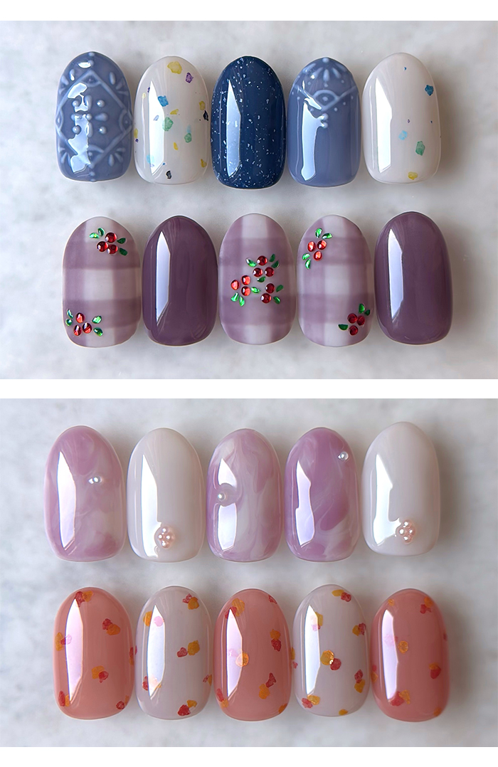 | 注意事項 | ・本製品は化粧品ではありません。ベースジェル(化粧品)の上からご使用ください。 ・ラベルシールの印刷のずれや、手作業でラベルシールを貼り付けているため、貼り付け位置にずれが生じる場合がございます。 ・当店取り扱いのUV/LEDライトに対応しています。 ・塗布量や撮影環境、モニターによって、色味の見え方が異なる場合がございます。 |