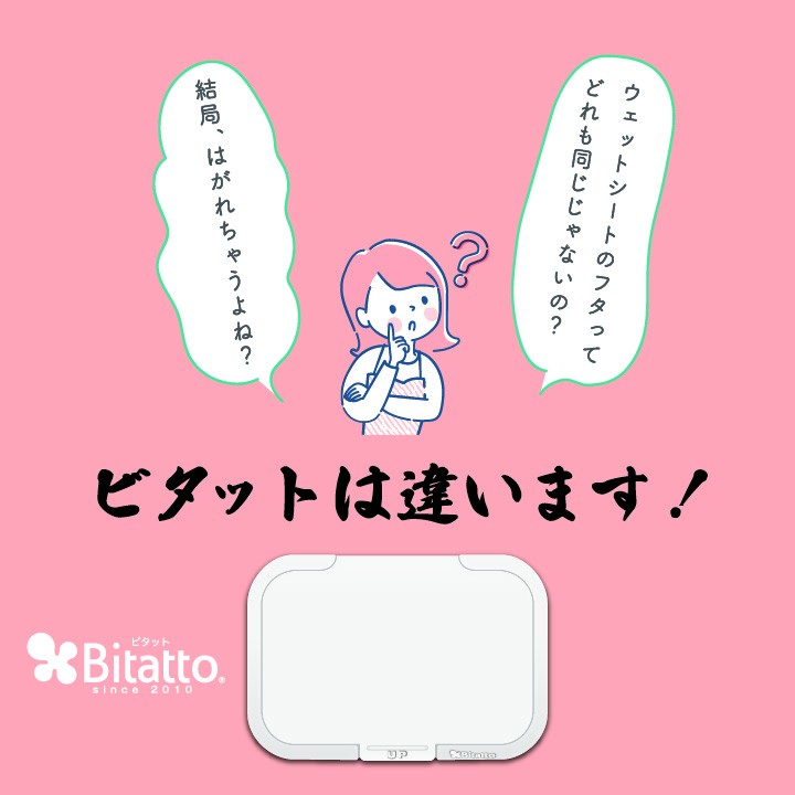ビタットは、ウェットシート等の取り出し口につけて使うプラスチック製のフタです。