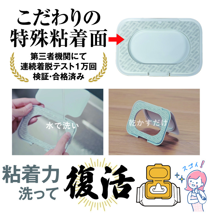 ウェットシートの取り口に貼るだけで乾きにくく取り出しやすくしてくれる便利なフタ「ビタット」