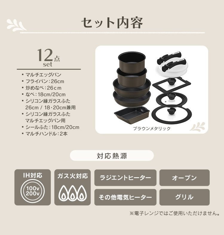 ※金属製の調理器具のため電子レンジではご使用いただけません。