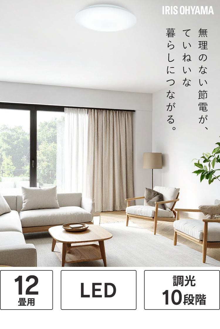 (検索用:シーリングライト led 12畳 調光 省エネ 節電モード搭載 照明器具 led照明器具 リビング照明 おしゃれ 取付簡単 アイリスオーヤマ 4967576782401)